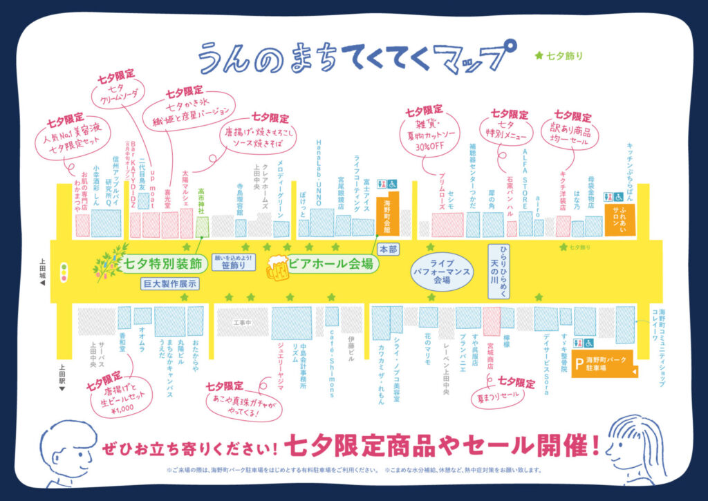 ・ご来場の際は、海野町パーク駐車場をはじめとする、有料駐車場をご利用ください。
