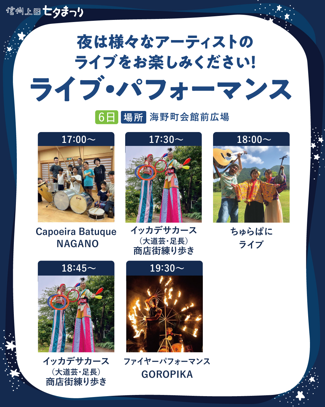 夜は、様々なパフォーマンスをお楽しみください。