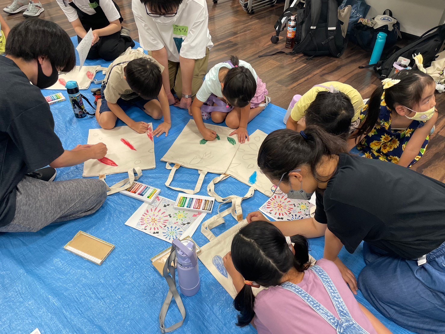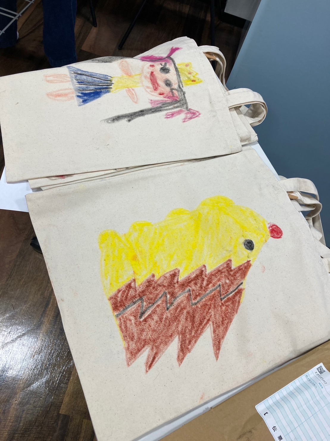 トートバッグの表には、大きな絵の一部、そして裏にはこどもたちが自由に絵を描きました。