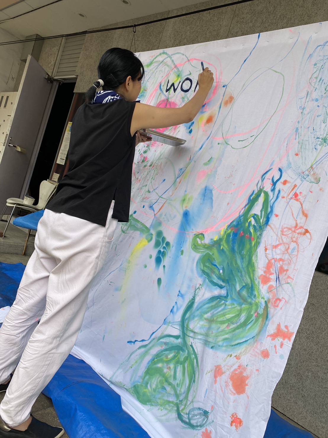 みんなで自由に絵を描こう!その道具は、手や足、もしくは体全体!?